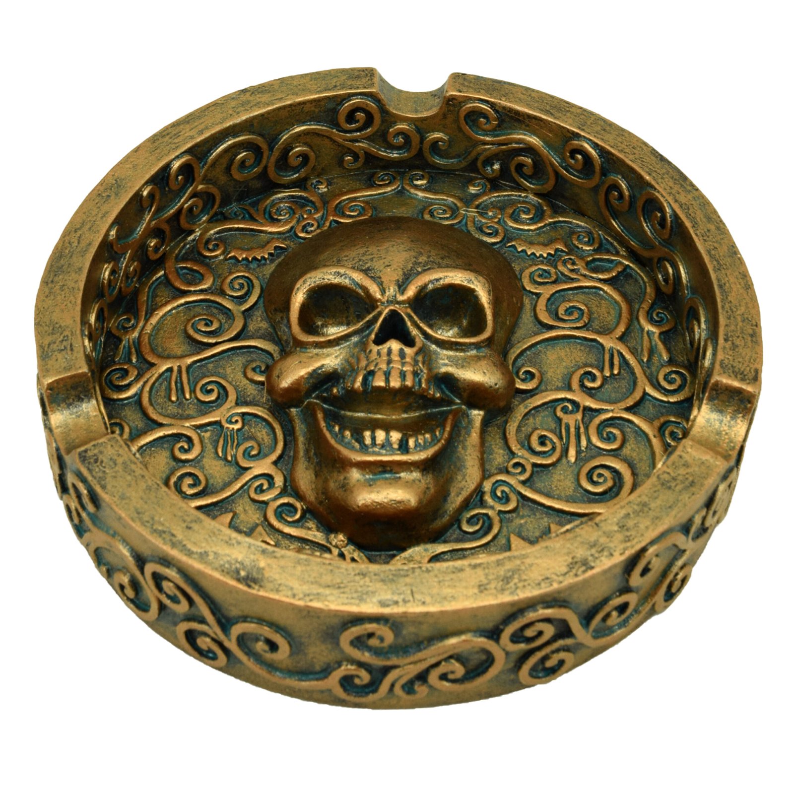 Decorative Ashtray – Metallic Brushed Gold Effect Skull