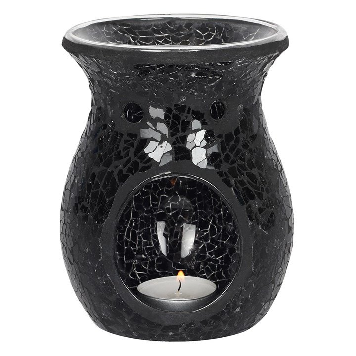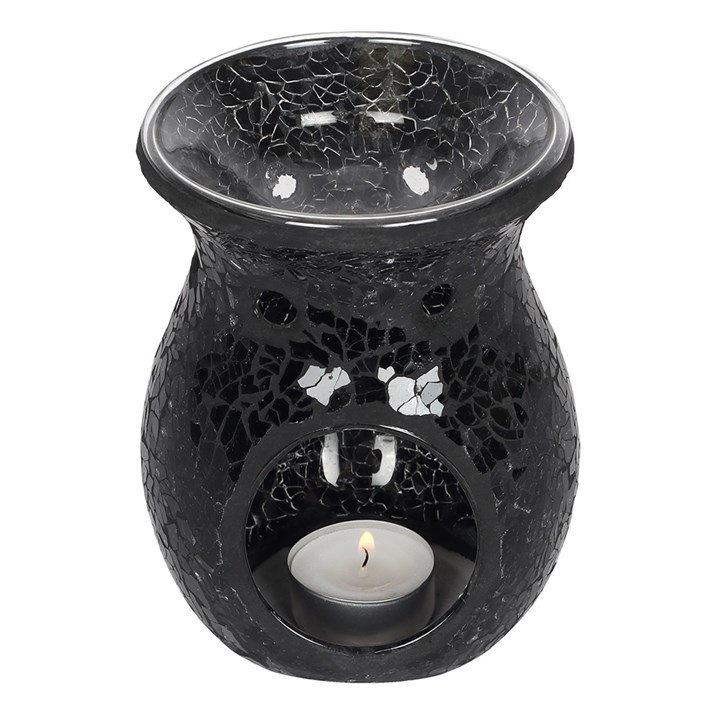 Beautiful large oil burner with a black mirrored crackle effect. This item can also be used as a wax melt burner however it is advisable to consider the size and depth of the bowl when adding wax to ensure it will not overrun the edges when melted. Product Dimensions: H14cm x W11cm x D11cm Packaged Dimensions: H16cm x W12.5cm x D12.5cm