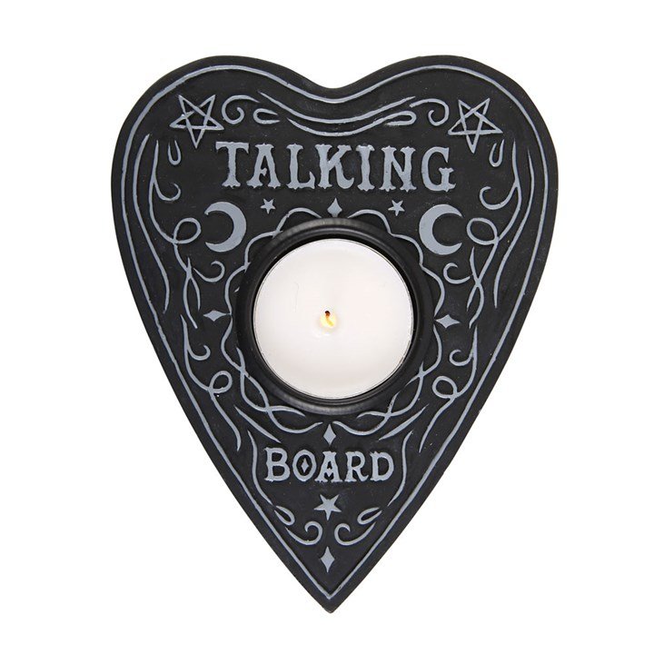 Transform any setting into a spooky sanctuary with this unique tealight holder inspired by the planchette from a talking board. Arrange multiple holders to create a dramatic centerpiece for a grand party display or scatter them strategically to infuse your night of horror movies with an extra layer of mystique.