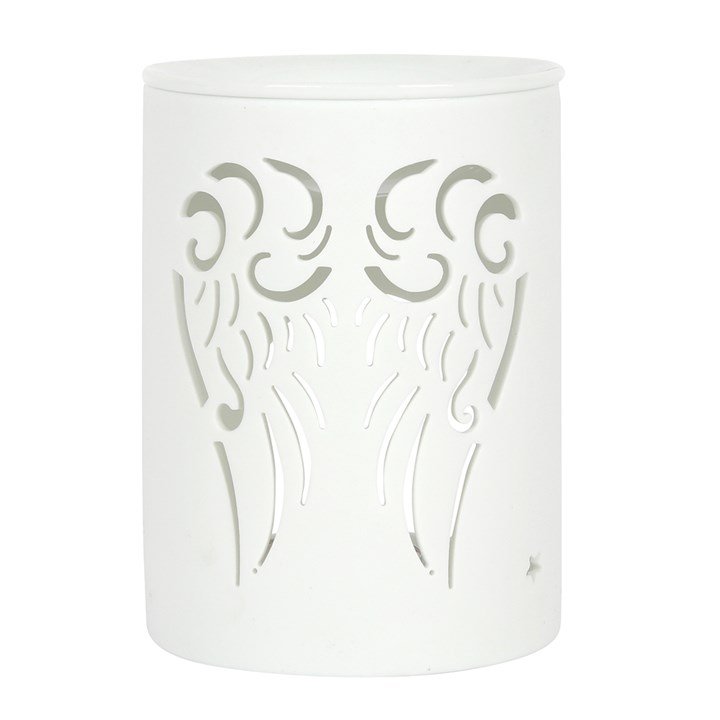 This white ceramic oil burner features cutout angel wings in a cute, contemporary design. Place fragrance oil or wax melts into the built-in dish with a standard tealight inside to fill the home with calming fragrance. Product Dimensions: H11.5cm x W8.5cm x D8.5cm Packaged Dimensions: H13.5cm x W10.5cm x D10.5cm